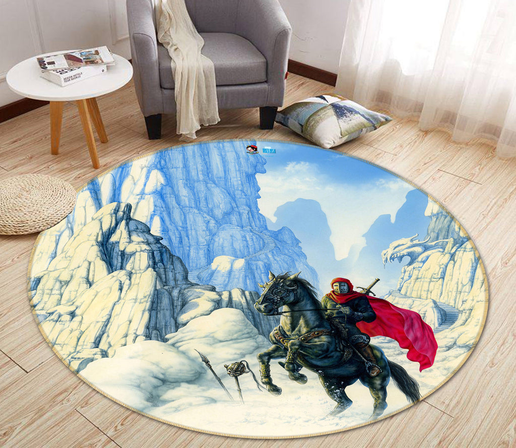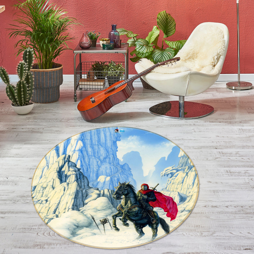 3D Rock Knight 6056 Ciruelo Rug Round Non Slip Rug Mat