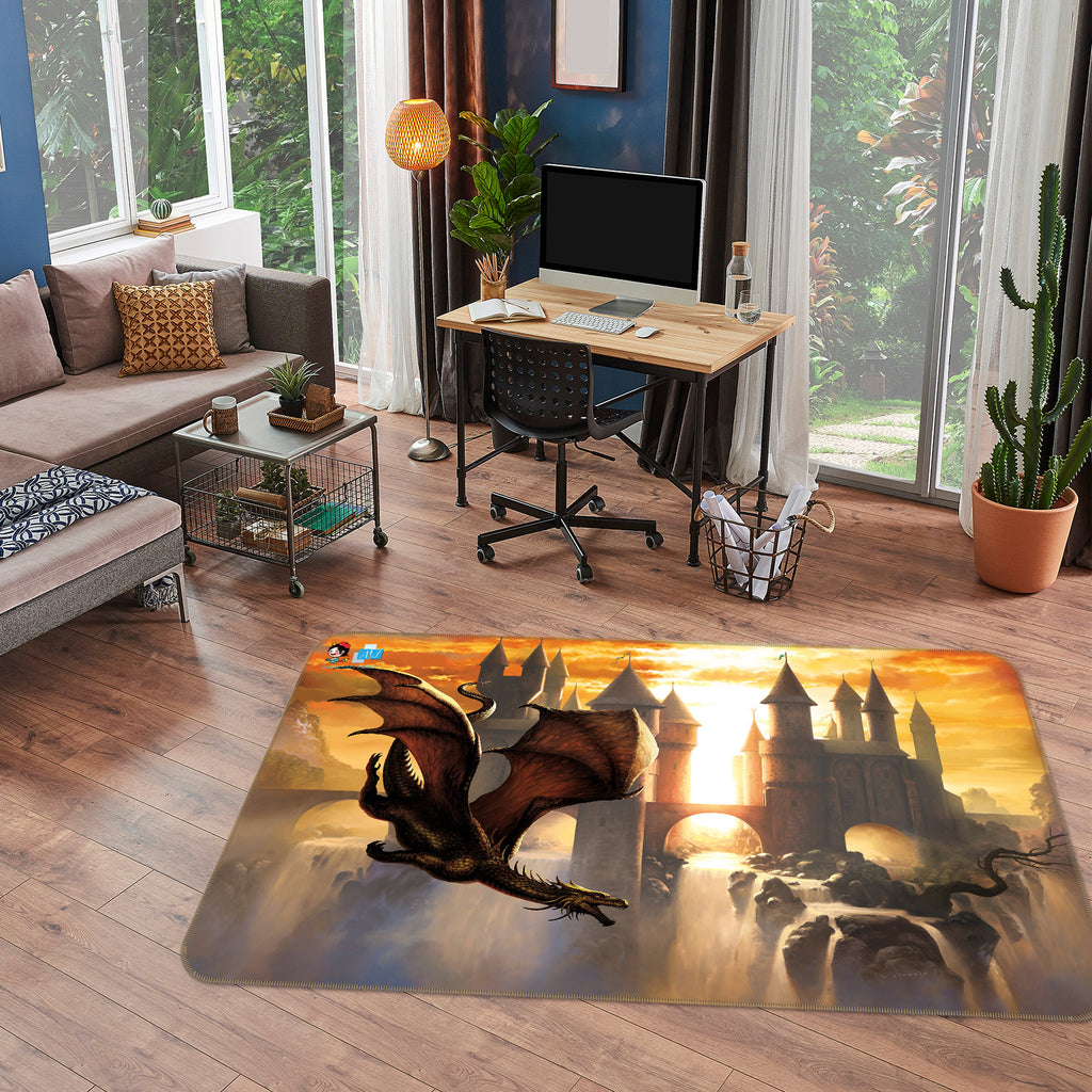 3D Sunset Castle Dragon 5152 Ciruelo Rug Non Slip Rug Mat