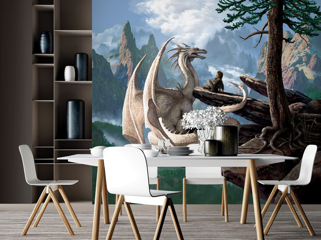 3D Mountain Dragon And Man 7057 Ciruelo Wall Mural Wall Murals