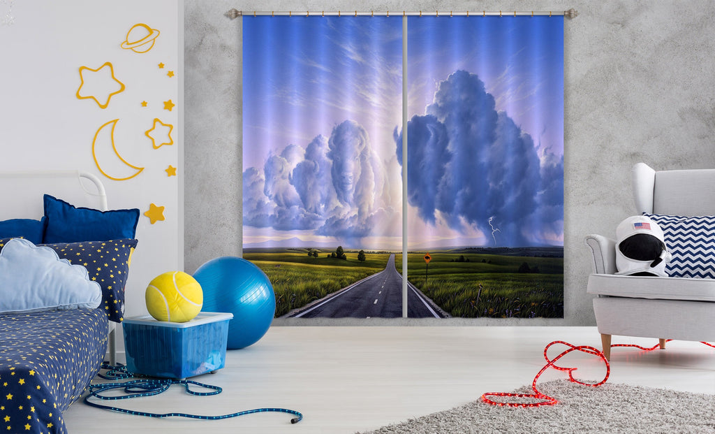 3D Blue Clouds 057 Jerry LoFaro Curtain Curtains Drapes Dai