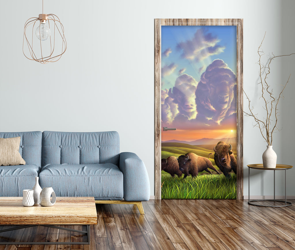 3D Clouds Meadow Yak 112155 Jerry LoFaro Door Mural Sinsin