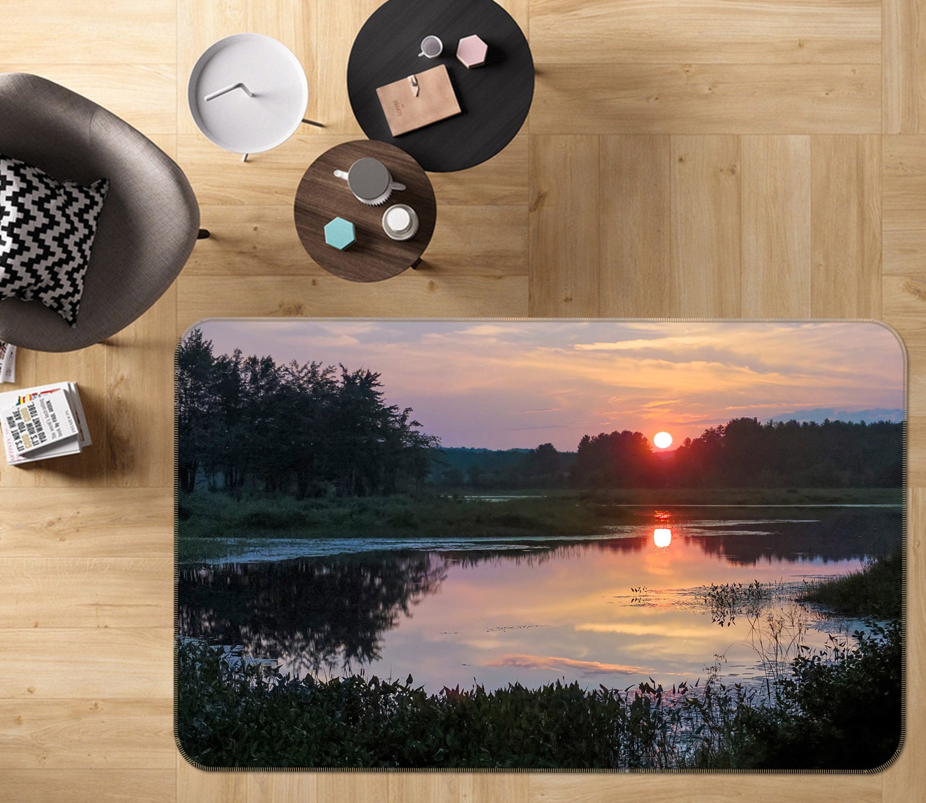 3D Sunset Forest Lake 1027 Jerry LoFaro Rug Non Slip Rug Mat Zoe