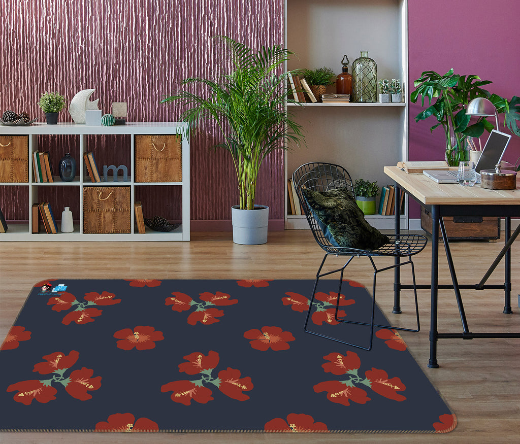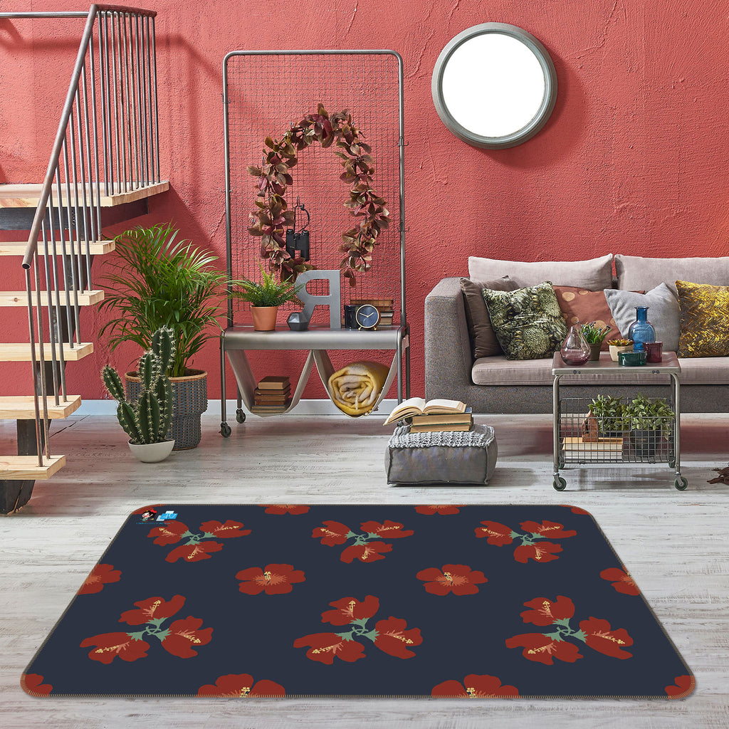 3D Red Flowers Pattern 9880 Kasumi Loffler Rug Non Slip Rug Mat Sinsin