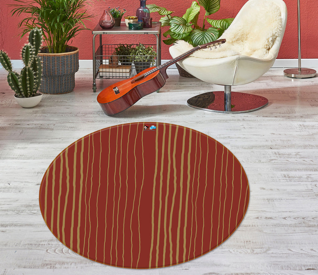 3D Red Yellow Stripes 98101 Kasumi Loffler Rug Round Non Slip Rug Mat Sinsin