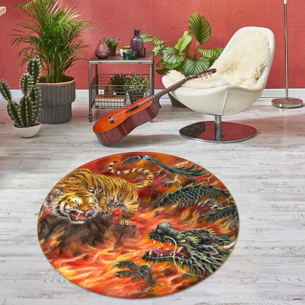 3D Tiger Dragon 6024 Kayomi Harai Rug Round Non Slip Rug Mat Amy