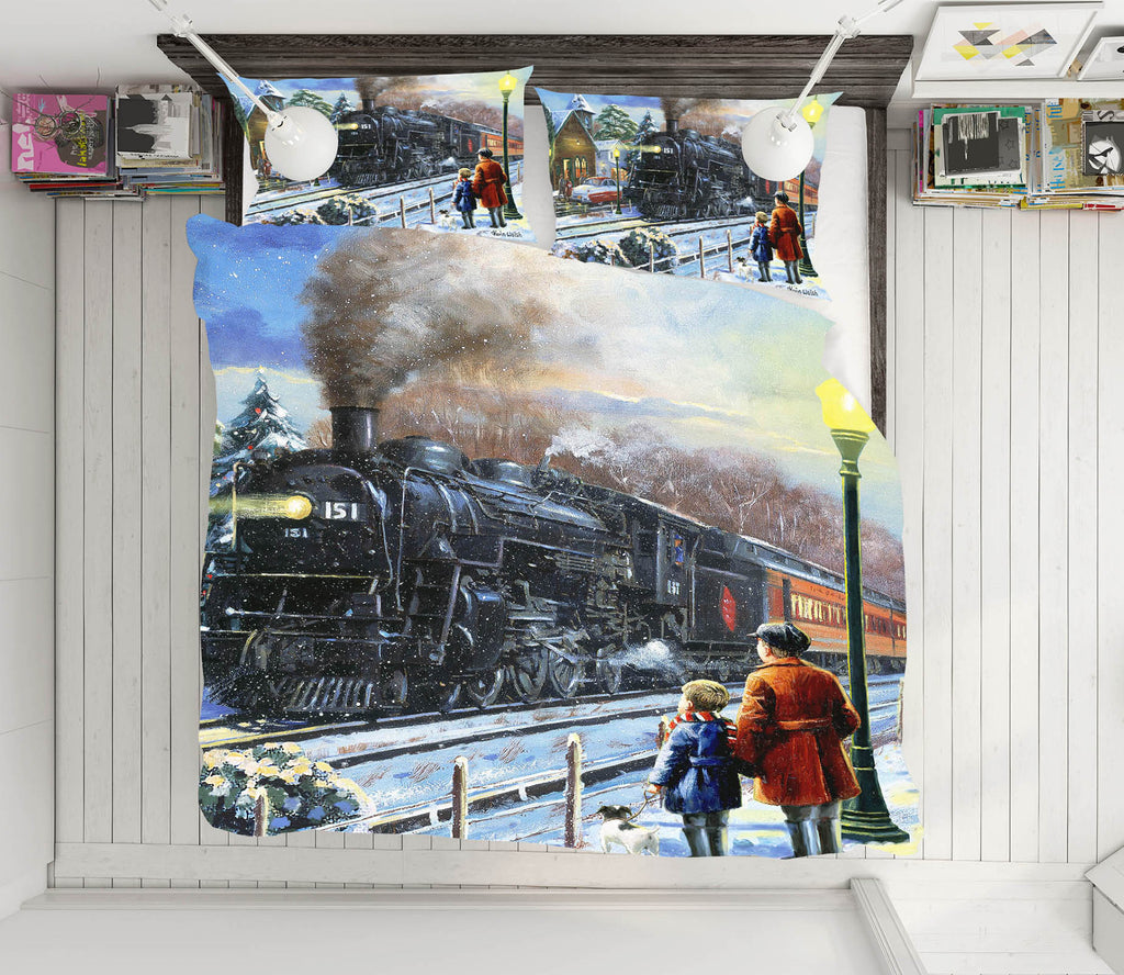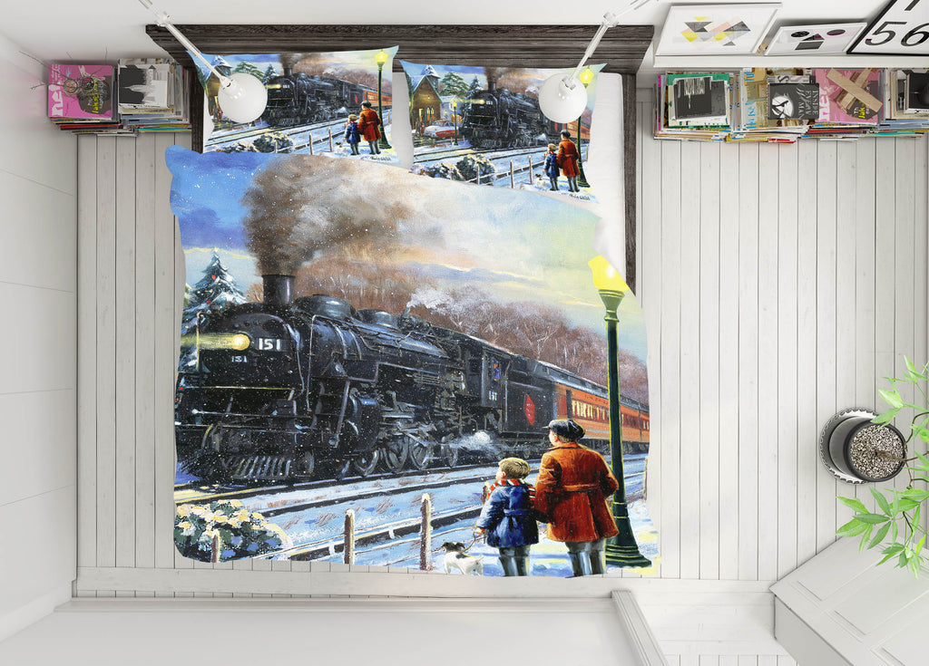 3D Steam Train 12526 Kevin Walsh Bedding Bed Pillowcases Quilt Sinsin