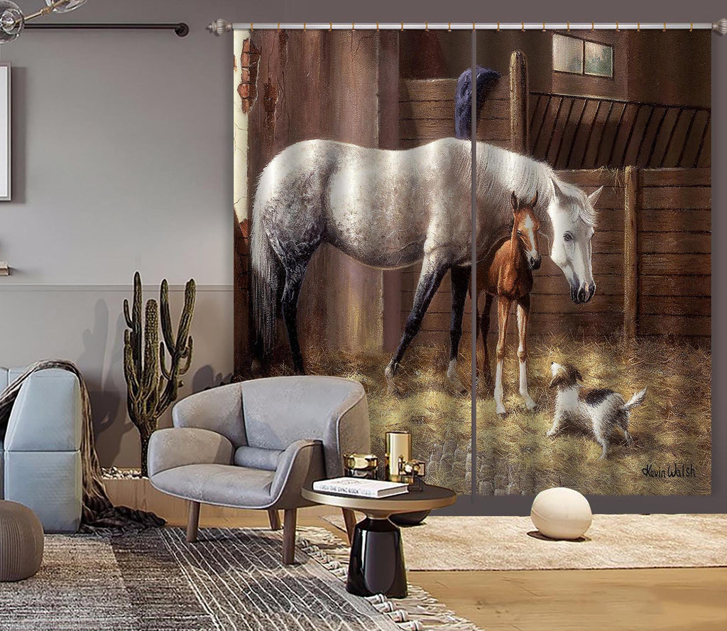 3D White Horse Meadow 134 Kevin Walsh Curtain Curtains Drapes Amy