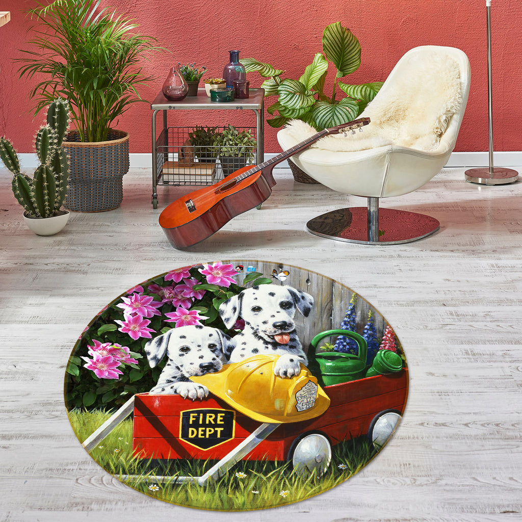 3D Dalmatian Flower 035 Kevin Walsh Rug Round Non Slip Rug Mat Sinsin