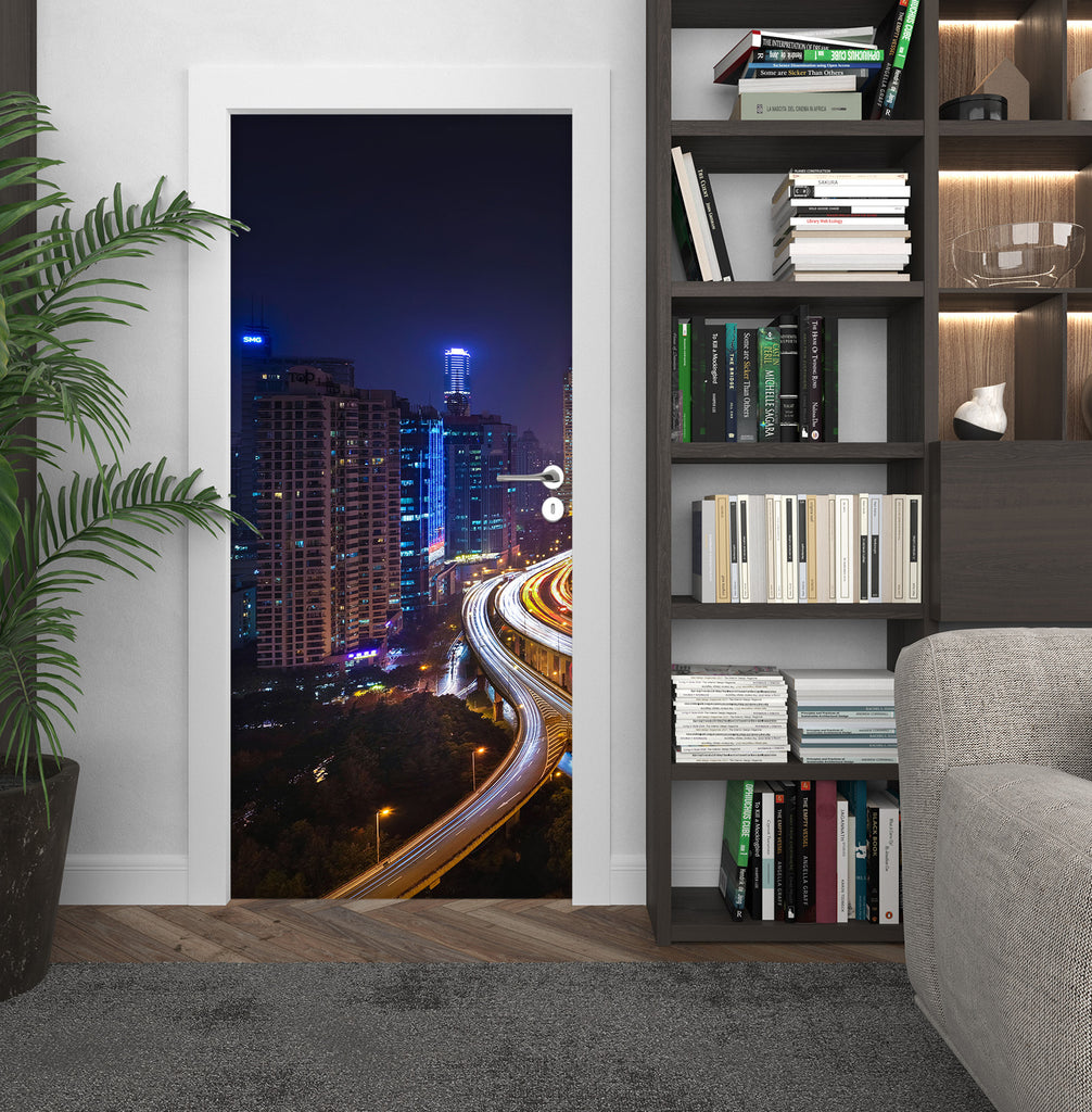 3D Night City Highway 121230 Marco Carmassi Door Mural Sinsin