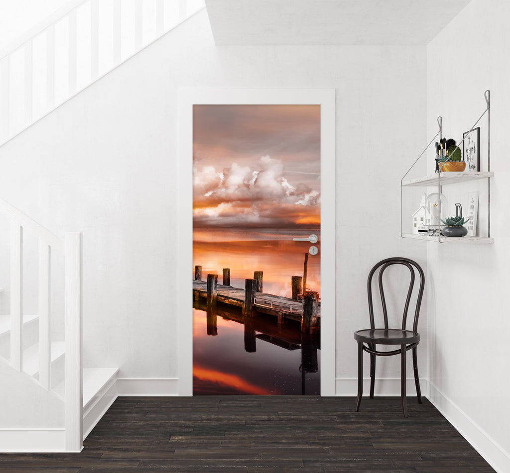 3D Wooden Bridge Lake 12294 Marco Carmassi Door Mural Sinsin