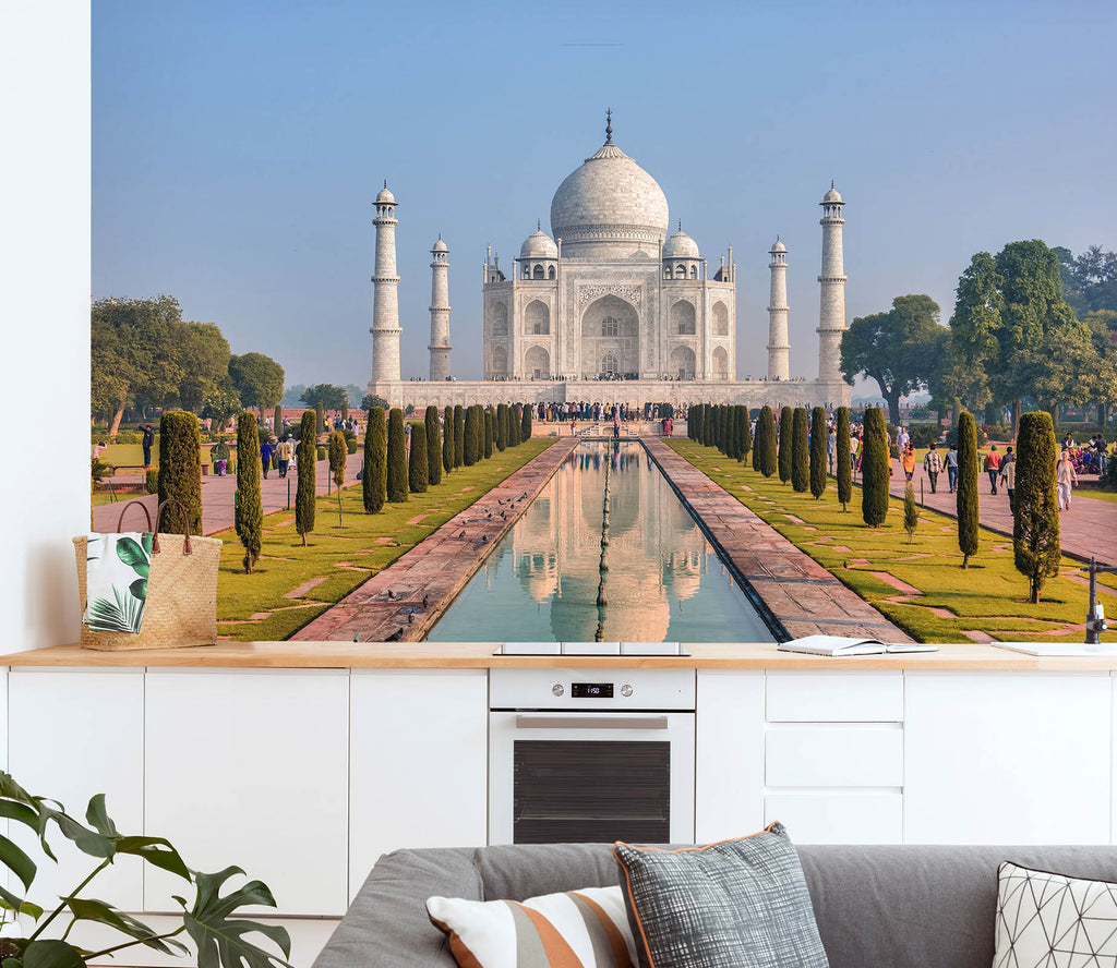 Make sure the wall surface is flat, clean and smooth. A clean and dry wall will help the adhesive from your wall mural to keep its stickiness. Put all panels on the ground, check the order. Measure and write down the dimensions of each panel. Mark vertical guidelines according to the panel's dimensions. Leave 2-3cm overlap between panels.