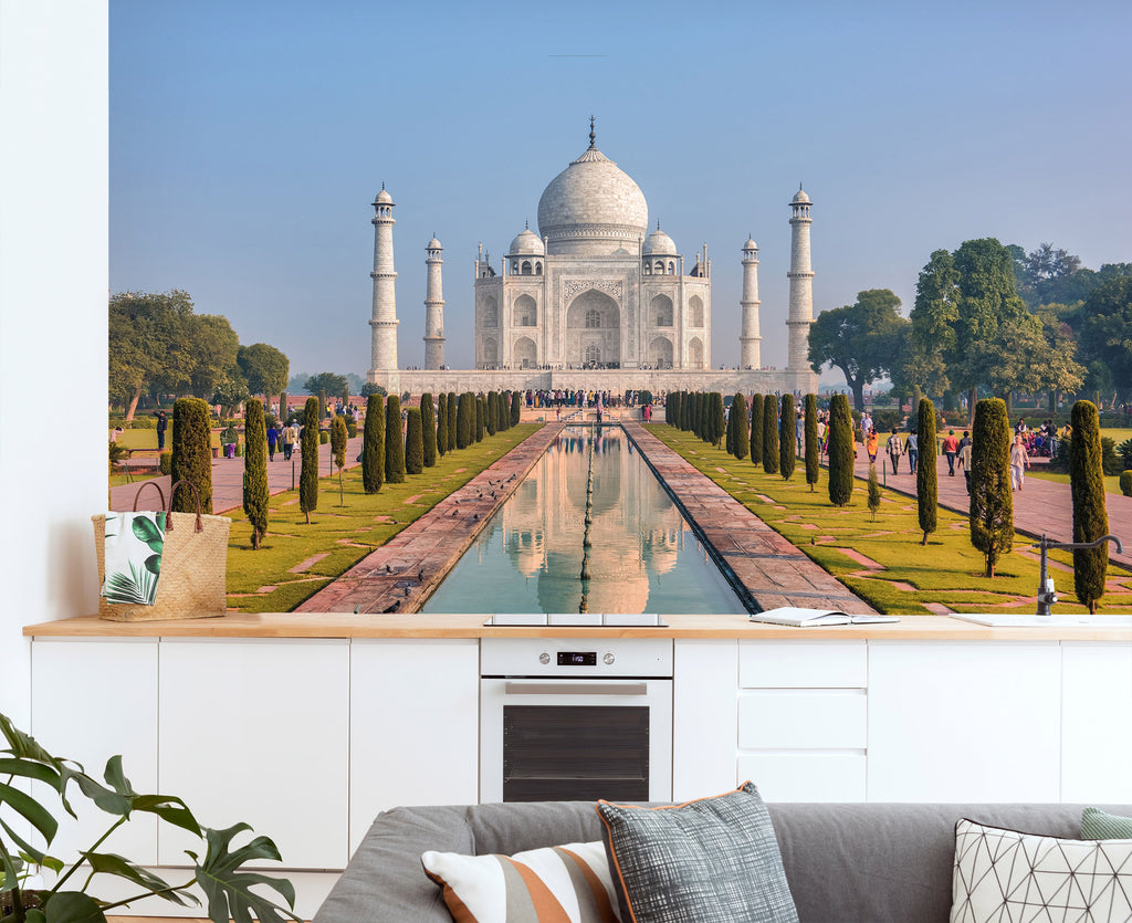 Apply the 1st panel. Leave 1-2cm overage on top. Bottom and left hand side. Smooth wrinkles and remove bubbles. Align panel 2 to panel 1. Simply match the pattern of the mural (with 2-3cm overlap)Peel away the excess piece.
