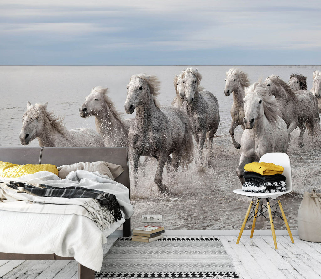 3D White Horse Gallop 1426 Marco Carmassi Wall Mural Wall Murals