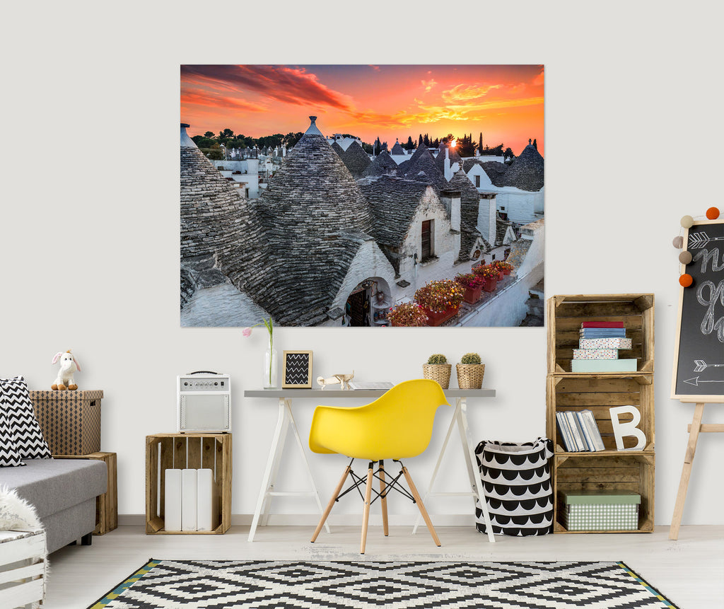 Make sure the wall surface is flat, clean and smooth. A clean and dry wall will help the adhesive from your wall mural to keep its stickiness. Put all panels on the ground, check the order. Measure and write down the dimensions of each panel. Mark vertical guidelines according to the panel's dimensions. Leave 2-3cm overlap between panels.