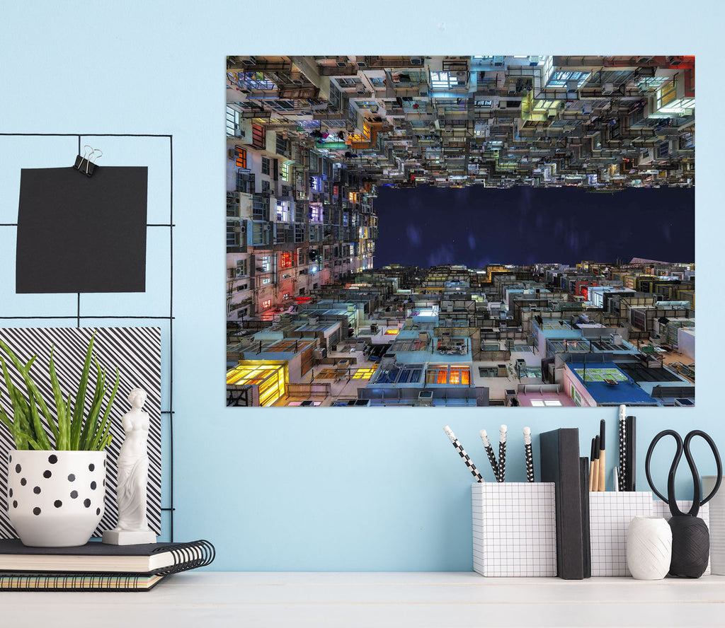 Make sure the wall surface is flat, clean and smooth. A clean and dry wall will help the adhesive from your wall mural to keep its stickiness. Put all panels on the ground, check the order. Measure and write down the dimensions of each panel. Mark vertical guidelines according to the panel's dimensions. Leave 2-3cm overlap between panels.
