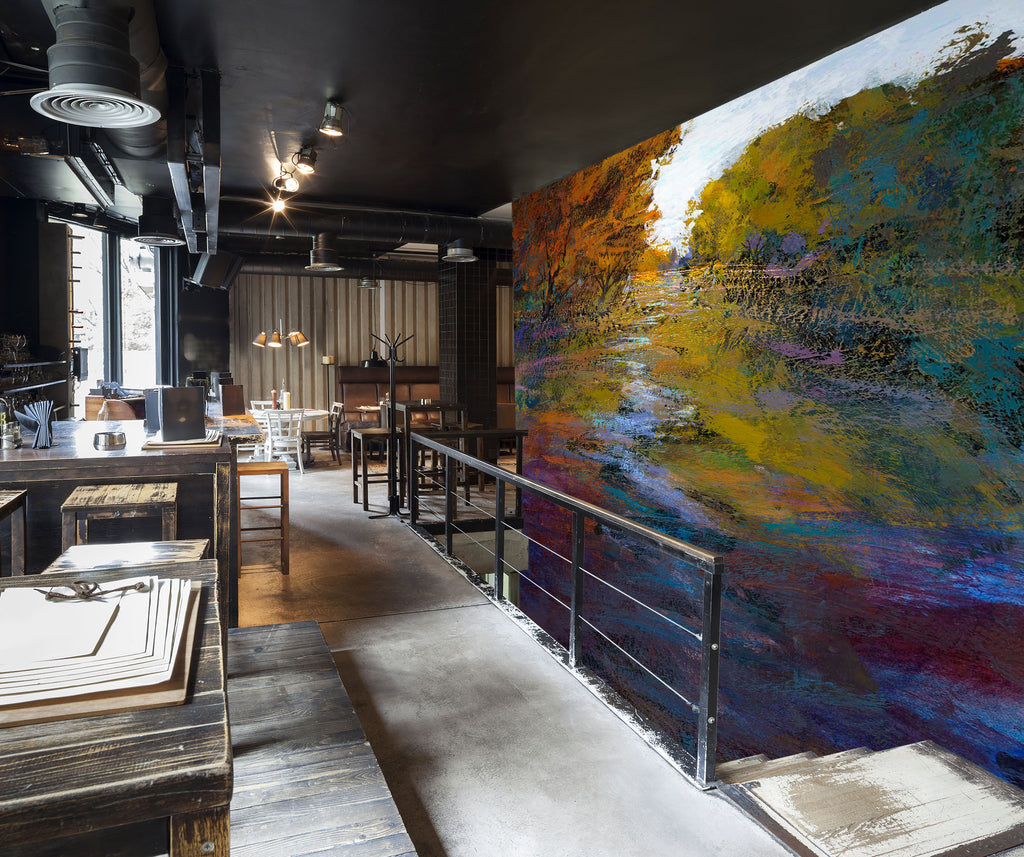 Align panel 2 to panel 1. Simply match the pattern of the mural (with 2cm overlap).No need to cut. Repeat for additional panels. Trim any ceiling and baseboard overage, lt's better to wipe the mural's surface with a wet cloth after the installation. Because it will make more sticky.