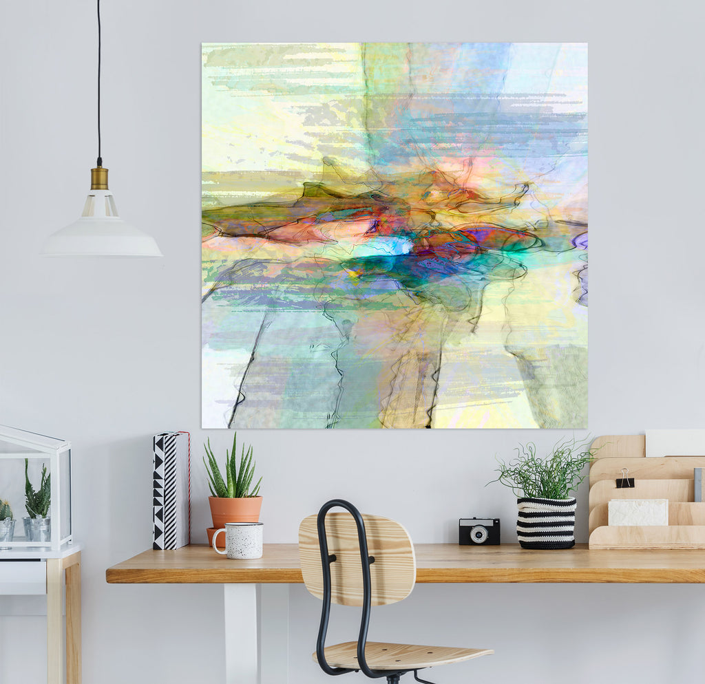 Make sure the wall surface is flat, clean and smooth. A clean and dry wall will help the adhesive from your wall mural to keep its stickiness. Put all panels on the ground, check the order. Measure and write down the dimensions of each panel. Mark vertical guidelines according to the panel's dimensions. Leave 2-3cm overlap between panels.