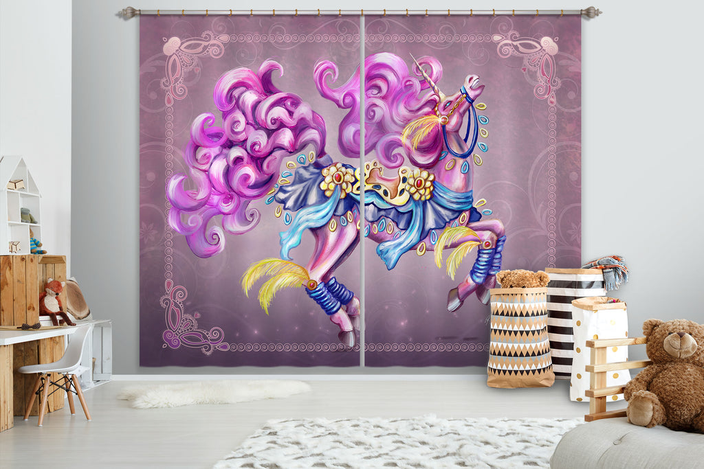 3D Purple Unicorn 115 Rose Catherine Khan Curtain Curtains Drapes Dai