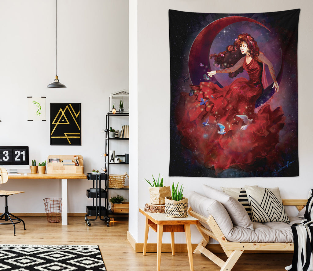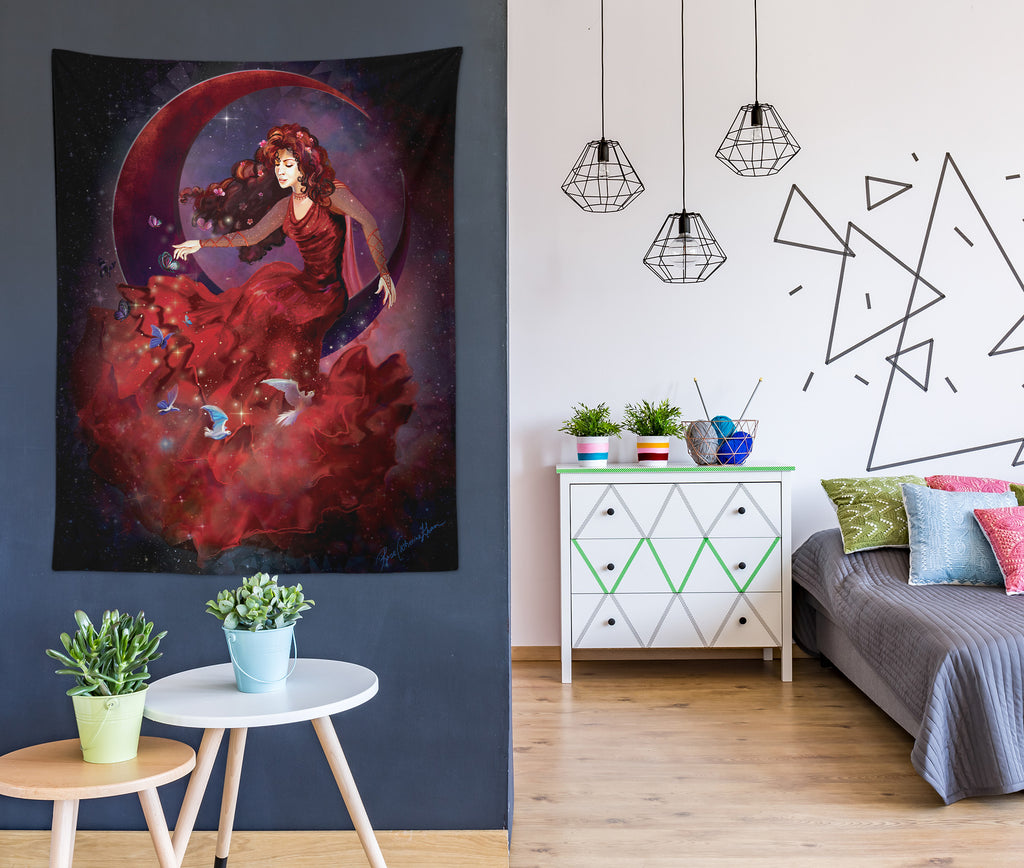 3D Moon Red Fairy 5215 Rose Catherine Khan Tapestry Hanging Cloth Hang Amy