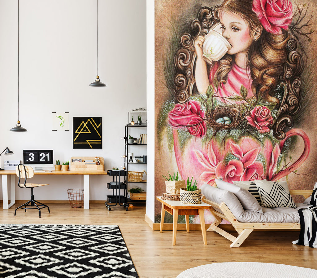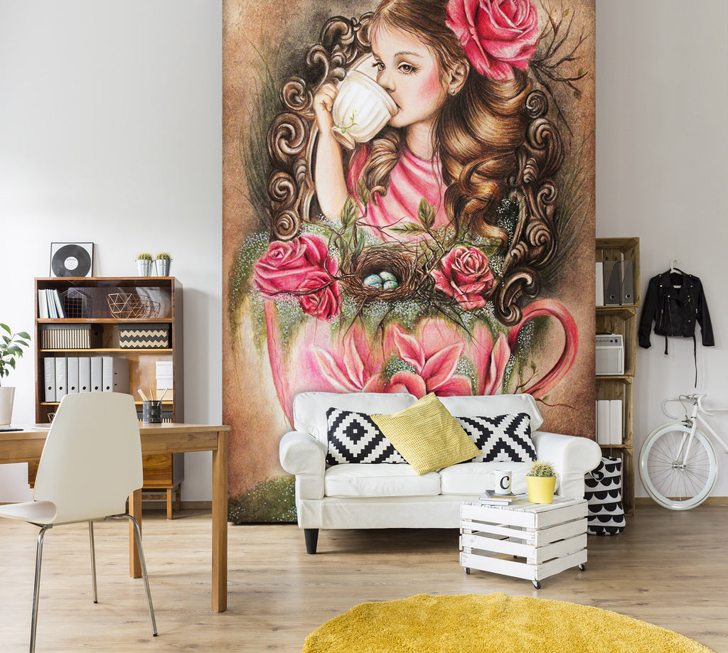 3D Red Rose Girl 8454 Sheena Pike Wall Mural Wall Murals Amy