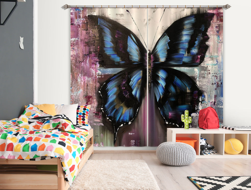 3D Blue Butterfly 2427 Skromova Marina Curtain Curtains Drapes