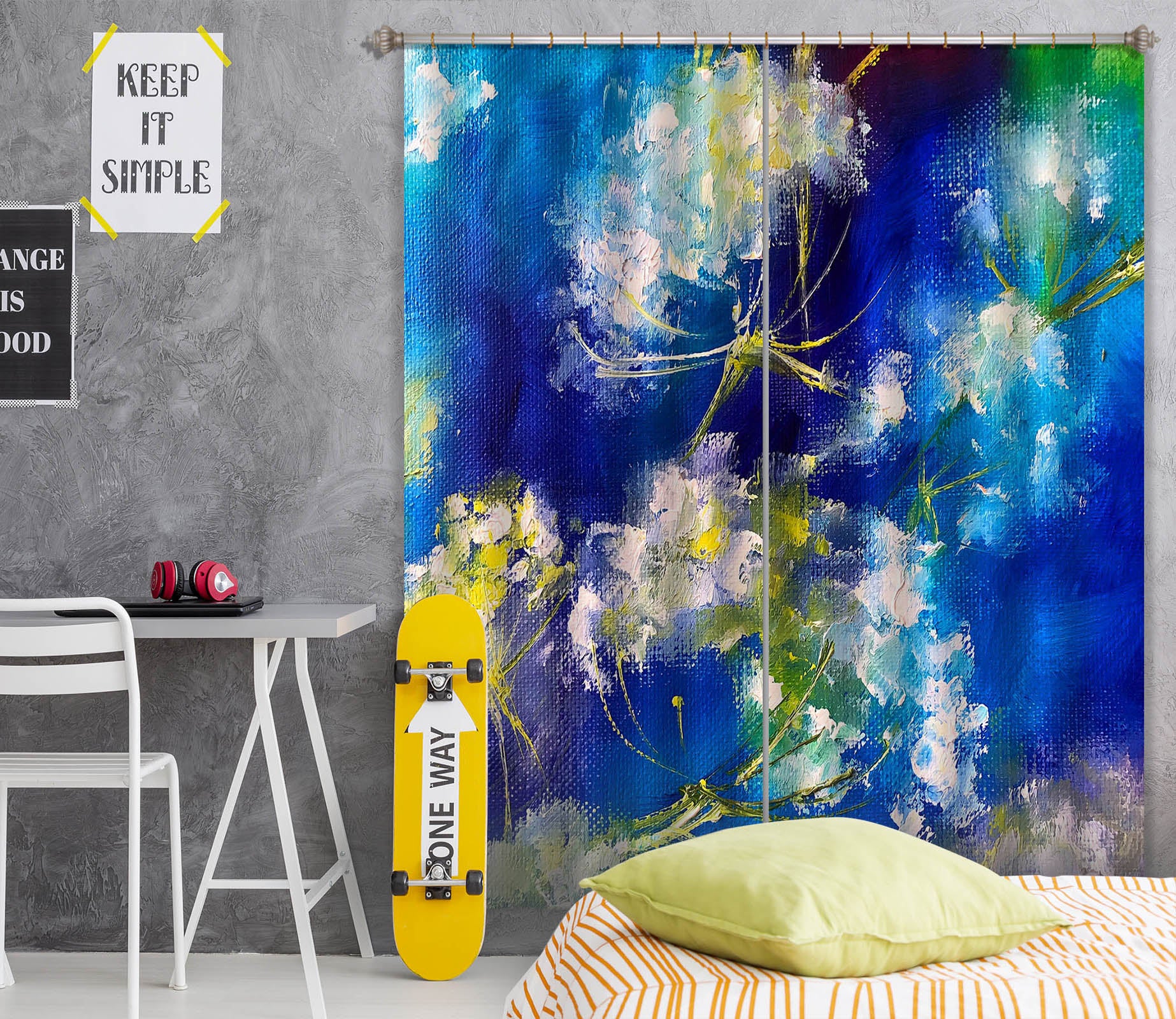 3D Blue Painted Flower 2421 Skromova Marina Curtain Curtains Drapes