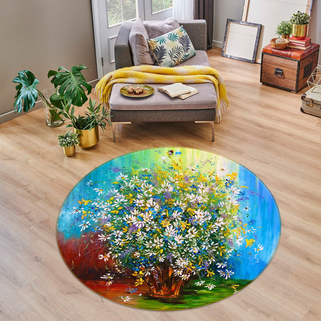 3D Daisy Pot 743 Skromova Marina Rug Round Non Slip Rug Mat