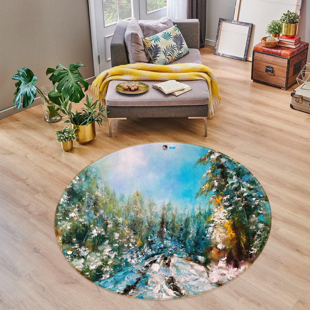 3D Painted Forest 736 Skromova Marina Rug Round Non Slip Rug Mat Amy