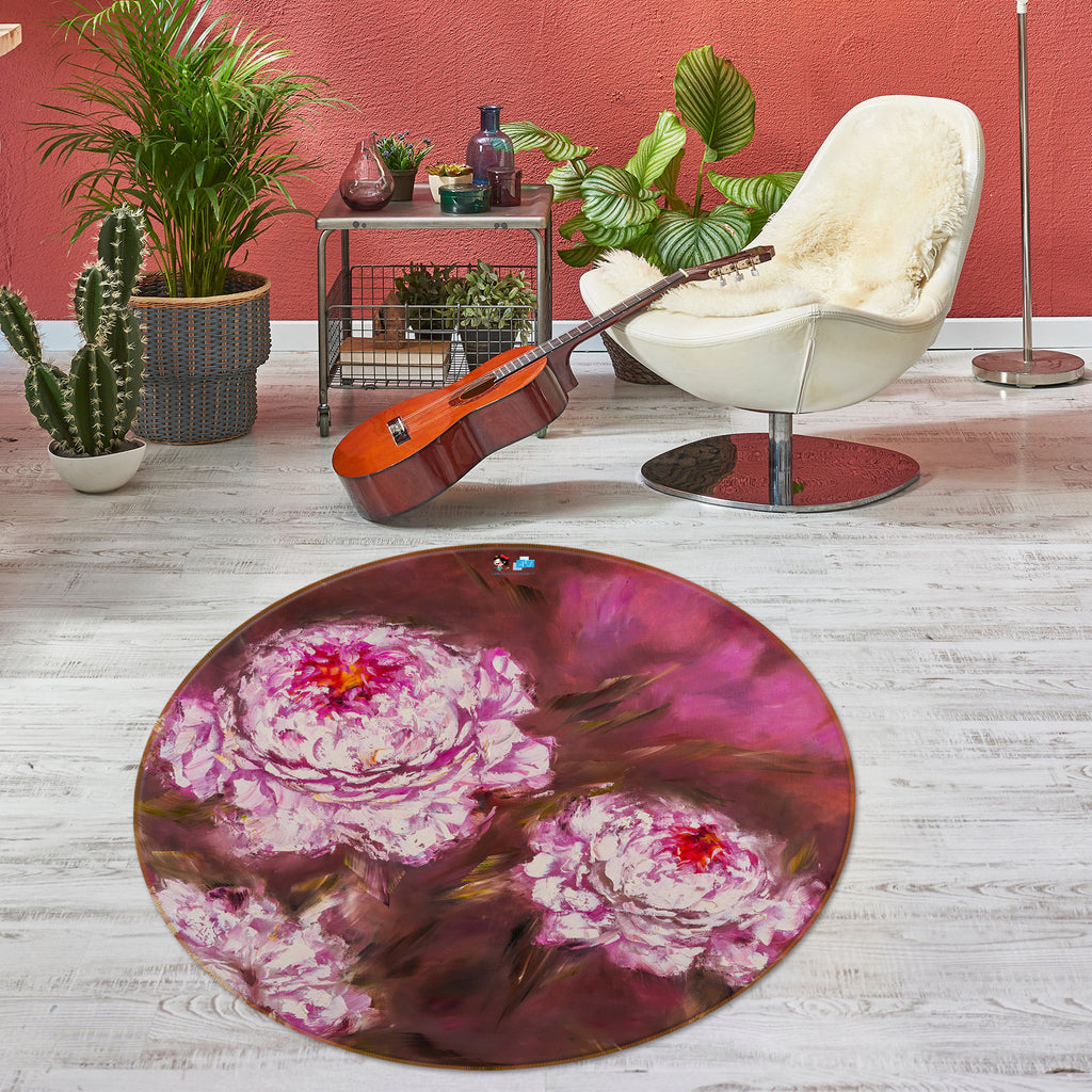 3D Pink Flower 741 Skromova Marina Rug Round Non Slip Rug Mat Amy