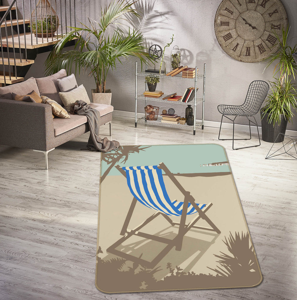 3D Bournemouth Blue Deckchair 1104 Steve Read Rug Non Slip Rug Mat Dai