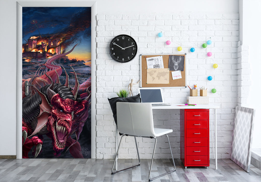 3D Red Dragon 628 Tom Wood Door Mural