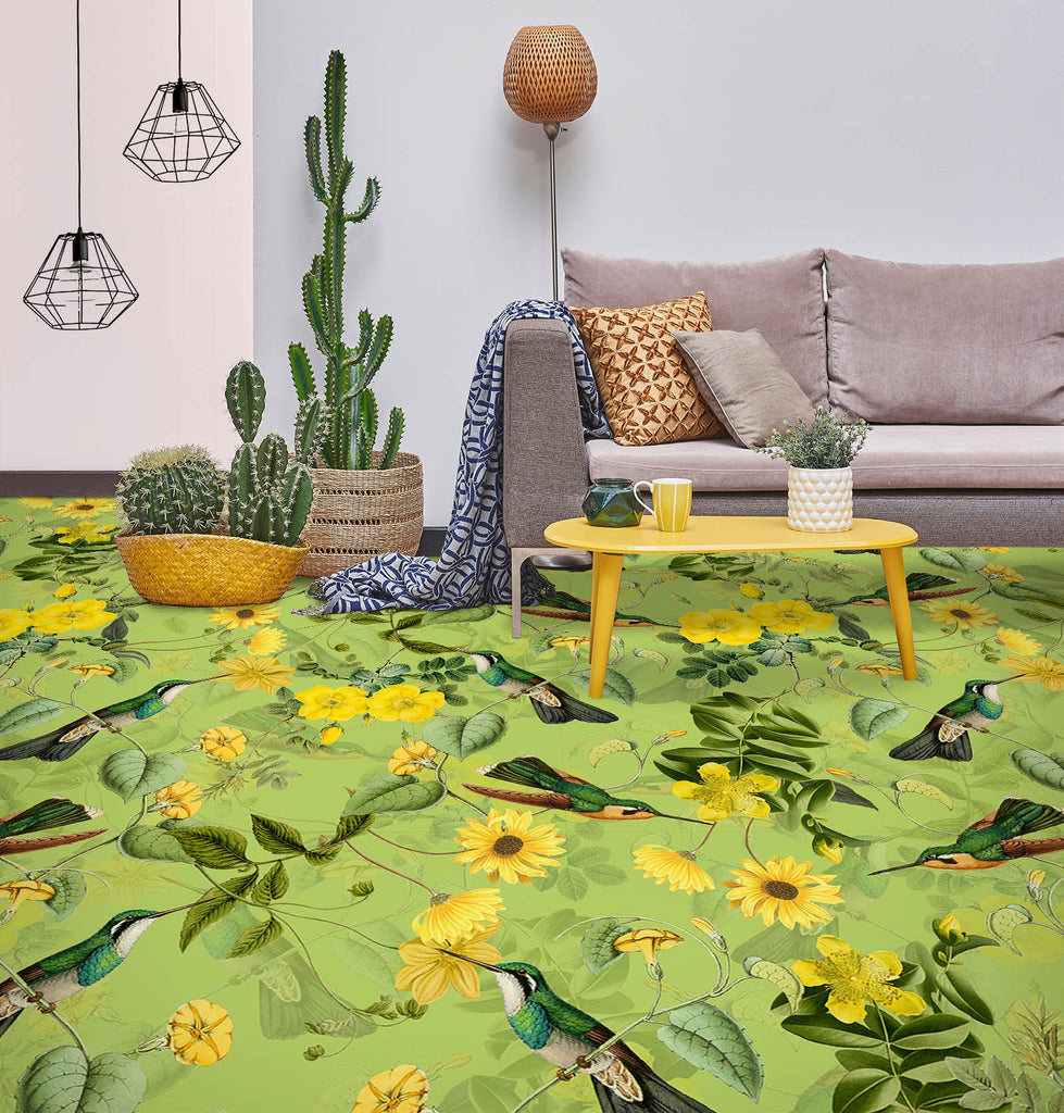 3D Green Pattern Bird Leaves 99220 Uta Naumann Floor Mural Wallpaper Murals Self-Adhesive Removable Print Epoxy