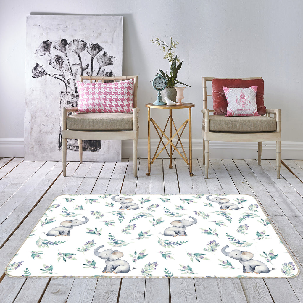 3D Elephant Flower 027 Uta Naumann Rug Non Slip Rug Mat Zoe