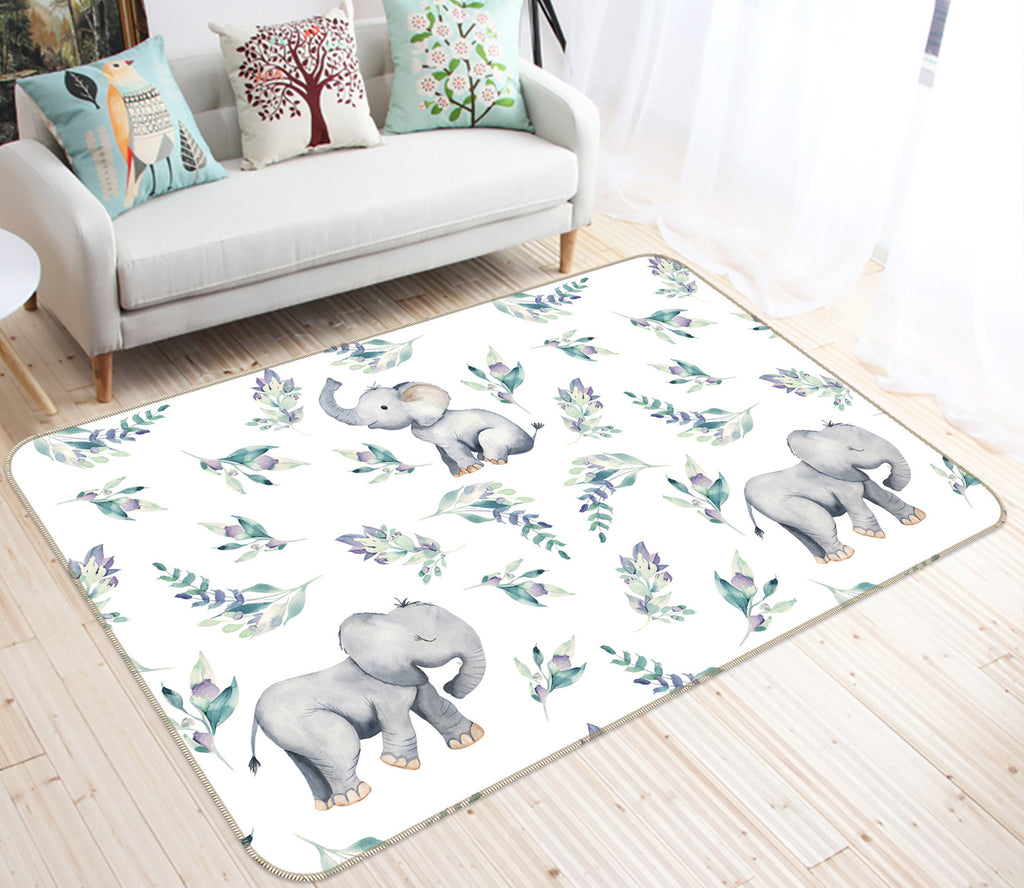 3D Elephant Leaf 028 Uta Naumann Rug Non Slip Rug Mat Zoe