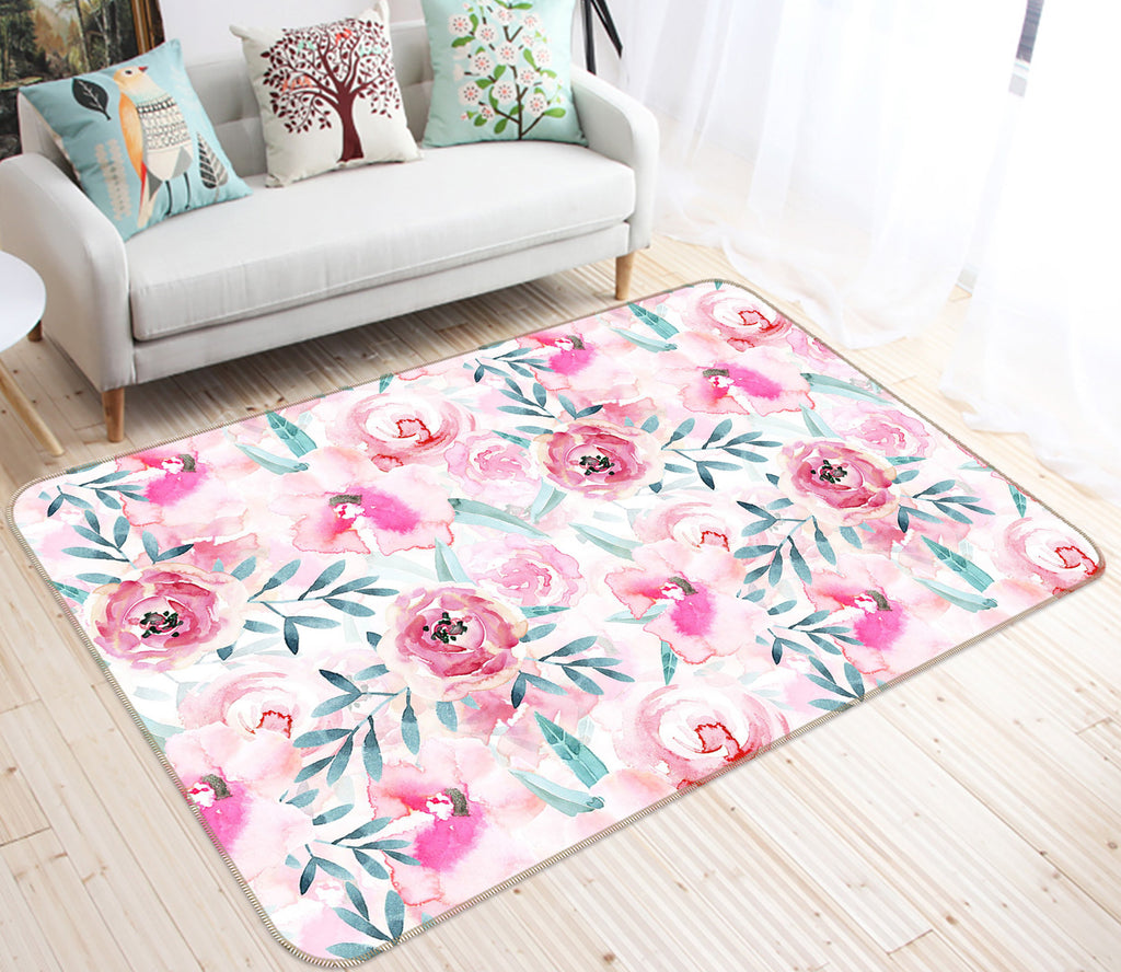 3D Leaves Flower 087 Uta Naumann Rug Non Slip Rug Mat