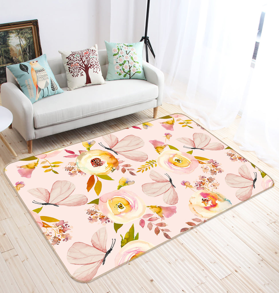 3D Pink Butterfly 102 Uta Naumann Rug Non Slip Rug Mat Zoe