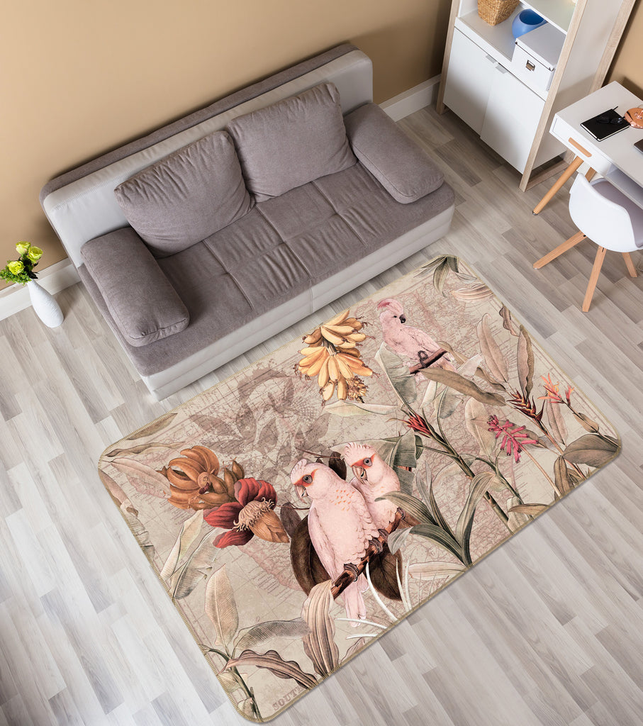3D Pink Parrot Banana 070 Uta Naumann Rug Non Slip Rug Mat
