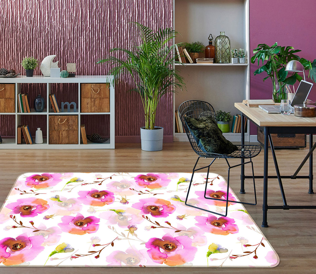 3D Red Ink Flower 091 Uta Naumann Rug Non Slip Rug Mat