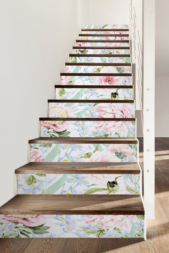 3D Light Pink Flowers 10437 Uta Naumann Stair Risers