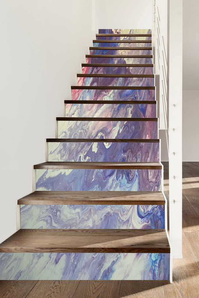 3D Blue Purple Water Paint Pattern 90192 Valerie Latrice Stair Risers Sinsin