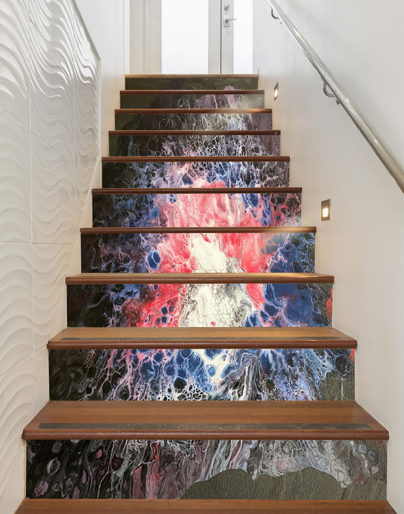 3D Blue Red Paint Pattern 90193 Valerie Latrice Stair Risers Sinsin