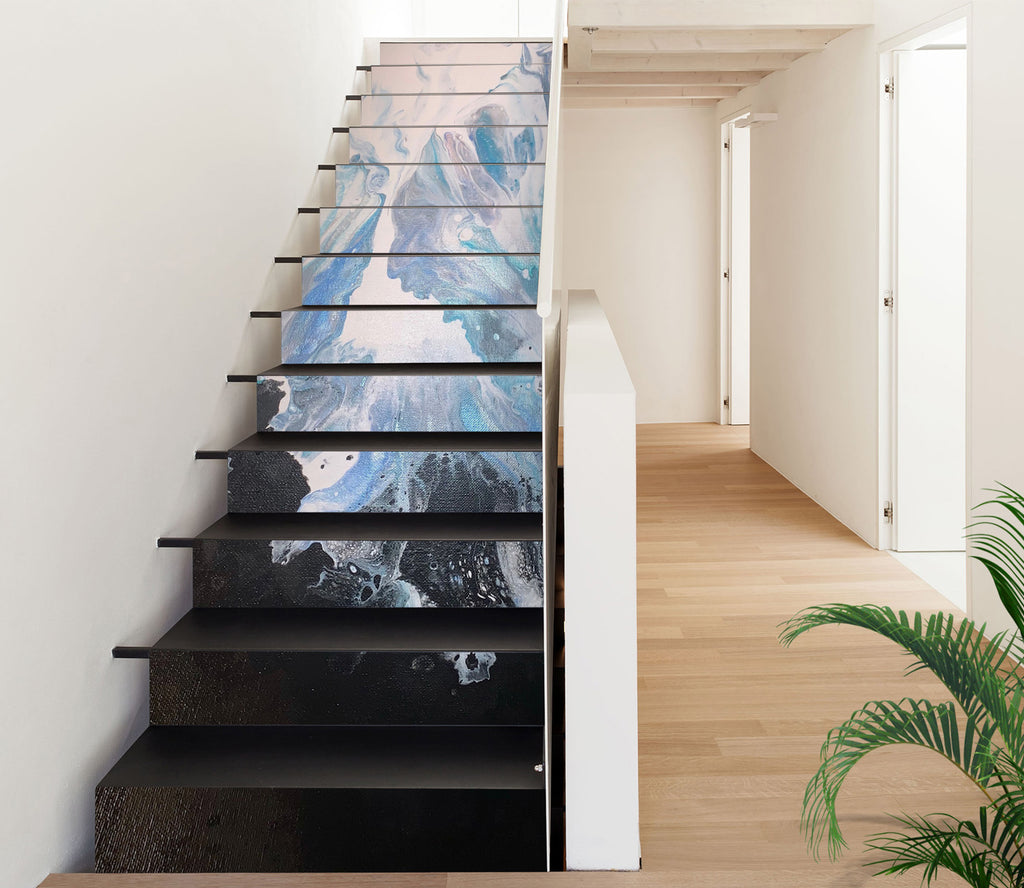 3D Sky Blue Black Water Paint 90186 Valerie Latrice Stair Risers Sinsin