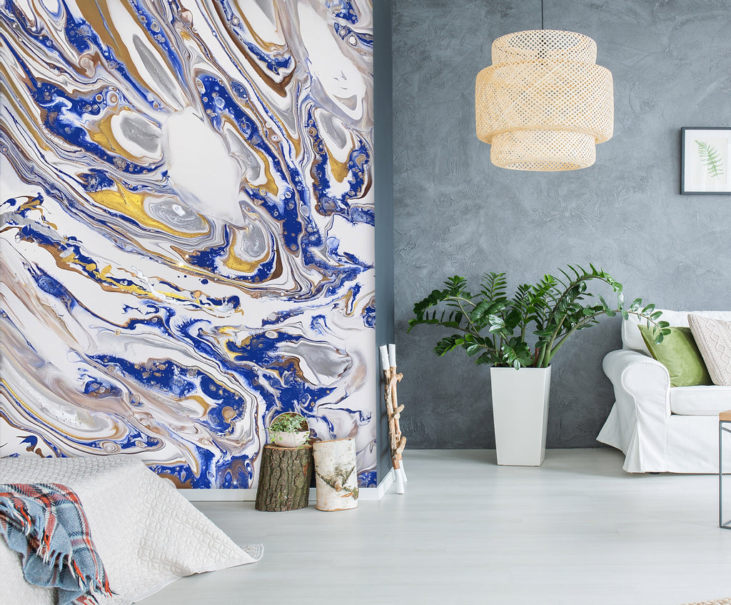 Make sure the wall surface is flat, clean and smooth. A clean and dry wall will help the adhesive from your wall mural to keep its stickiness. Put all panels on the ground, check the order. Measure and write down the dimensions of each panel. Mark vertical guidelines according to the panel's dimensions. Leave 2-3cm overlap between panels.