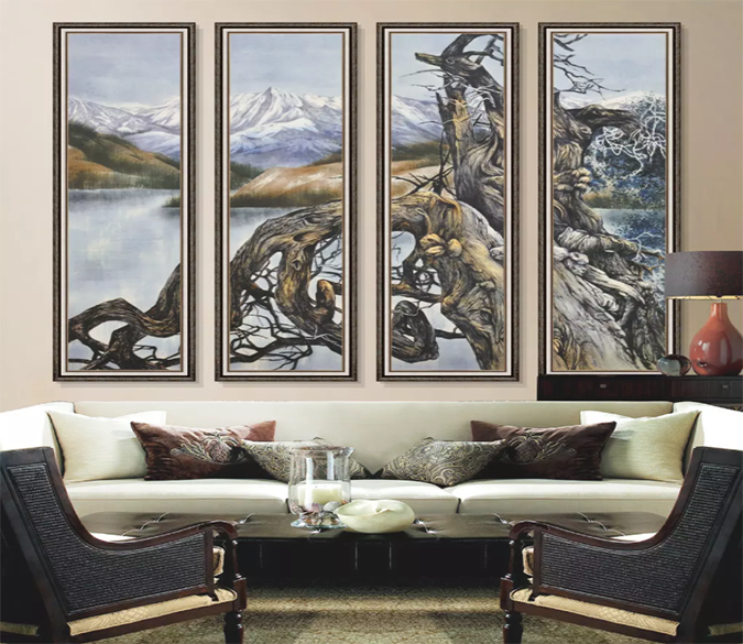 Make sure the wall surface is flat, clean and smooth. A clean and dry wall will help the adhesive from your wall mural to keep its stickiness. Put all panels on the ground, check the order. Measure and write down the dimensions of each panel. Mark vertical guidelines according to the panel's dimensions. Leave 2-3cm overlap between panels.