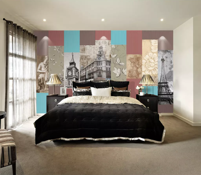 Make sure the wall surface is flat, clean and smooth. A clean and dry wall will help the adhesive from your wall mural to keep its stickiness. Put all panels on the ground, check the order. Measure and write down the dimensions of each panel. Mark vertical guidelines according to the panel's dimensions. Leave 2-3cm overlap between panels.