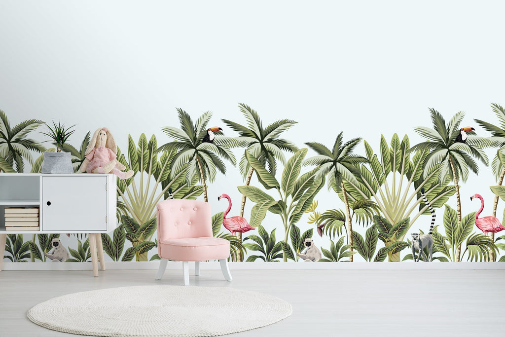 Apply the 1st panel. Leave 1-2cm overage on top. Bottom and left hand side. Smooth wrinkles and remove bubbles. Align panel 2 to panel 1. Simply match the pattern of the mural (with 2-3cm overlap)Peel away the excess piece.