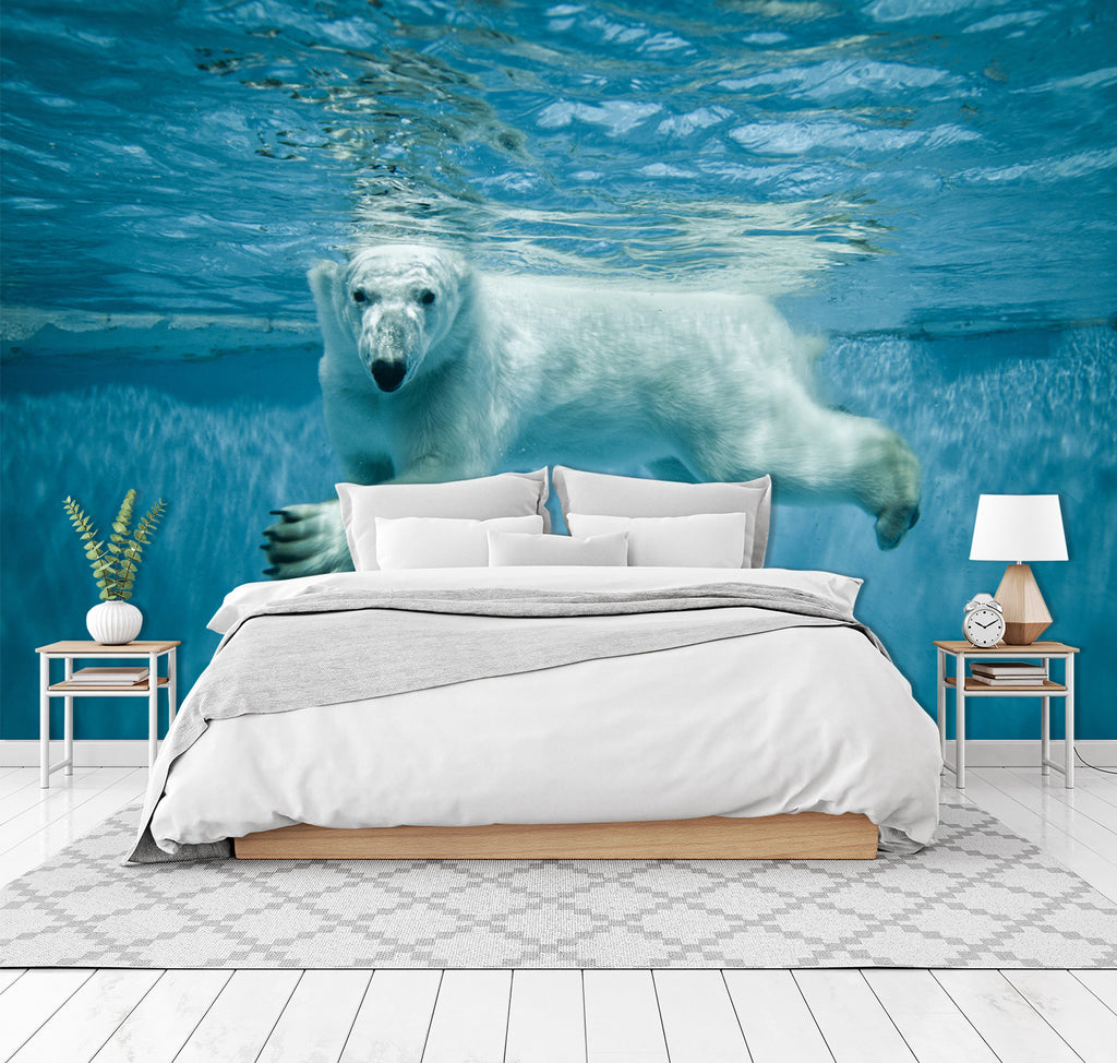 3D Polar Bear Swimming 324 Wall Murals Zoe