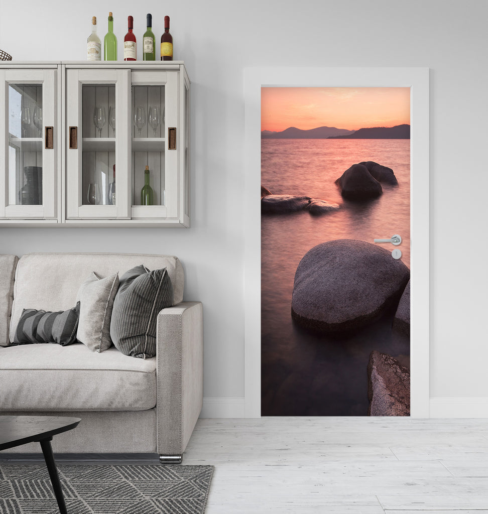 3D Sunset Sea Stones 122 Door Mural Zoe