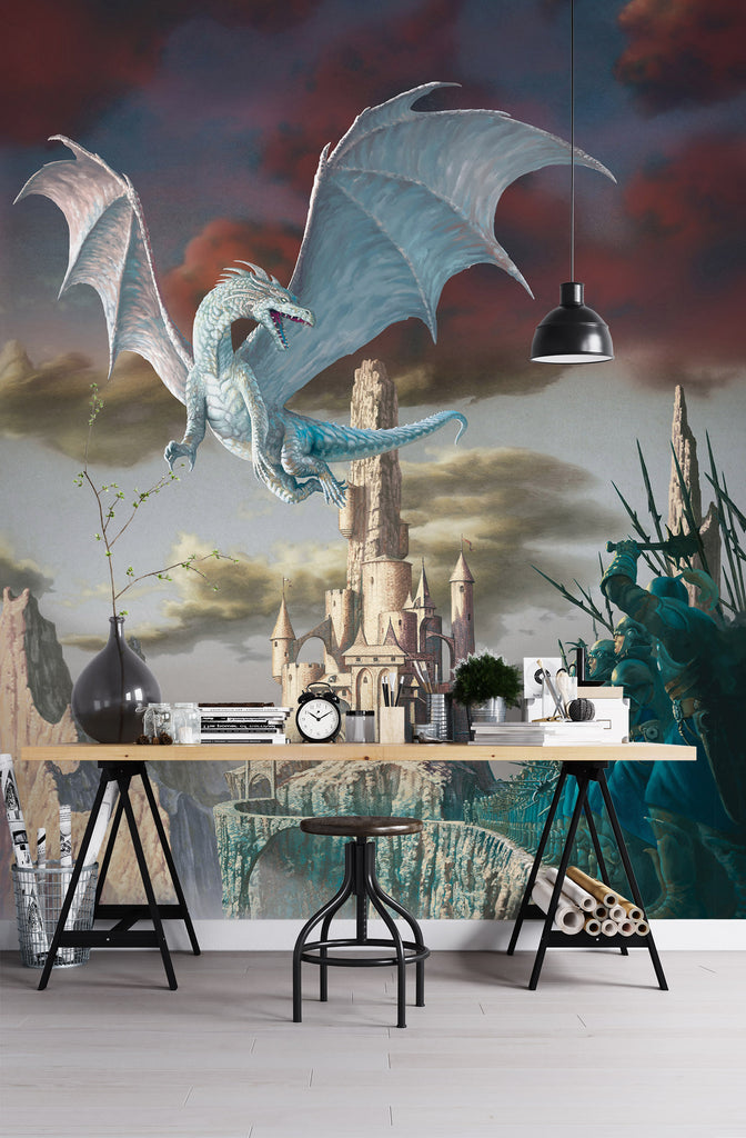 3D Castle White Dragon 7087 Ciruelo Wall Mural Wall Murals Sinsin
