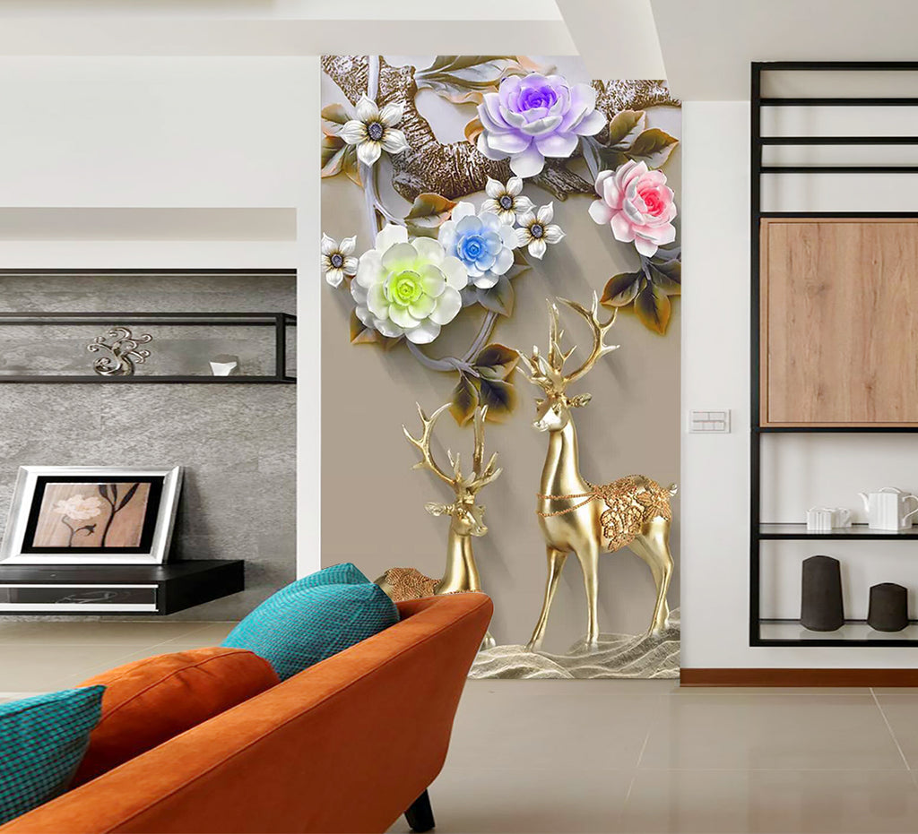 3D Metal Fawn Flower WC816 Wall Murals Zoe